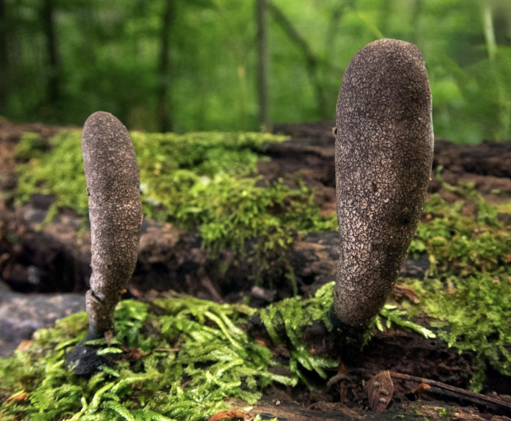 Happy October! To celebrate the favorite season of many fungi fans, here’s a pair of spooky Dead Moll’s Fingers (Xylaria longipes) At first glance, X. longipes might look nearly identical to its more common cousin, Xylaria polymorpha—better known as Dead Man’s Fingers—but with a closer look, the differences begin to emerge. X. longipes is more slender and elongated, often slightly curved or club-shaped, and usually sports a visible stalk. X. polymorpha, by contrast, is thicker, more irregular, typically stalkless, and tends to resemble horrible cocktail sausages left in the broiler or charred clumps of well, dead man’s fingers.